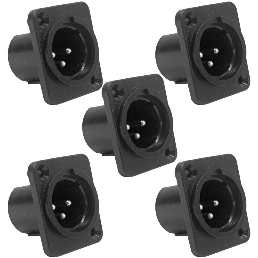 5 Pack of 3 Pole XLR Male Vertical PCB Mount Connectors - Black